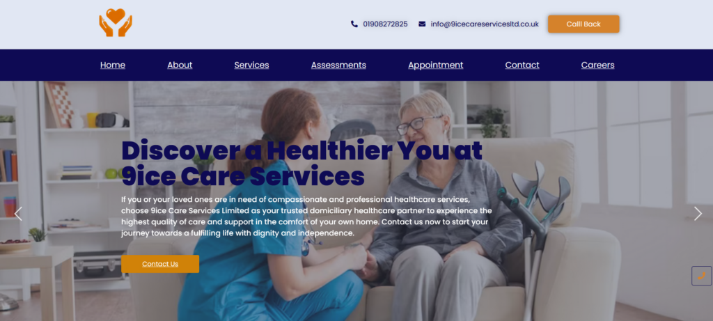 At Nyotacore, we developed a professional, user-friendly website for 9ice Care Services Ltd, a trusted domiciliary healthcare provider in the UK. Our goal was to create a platform that reflects their commitment to compassionate and high-quality care.